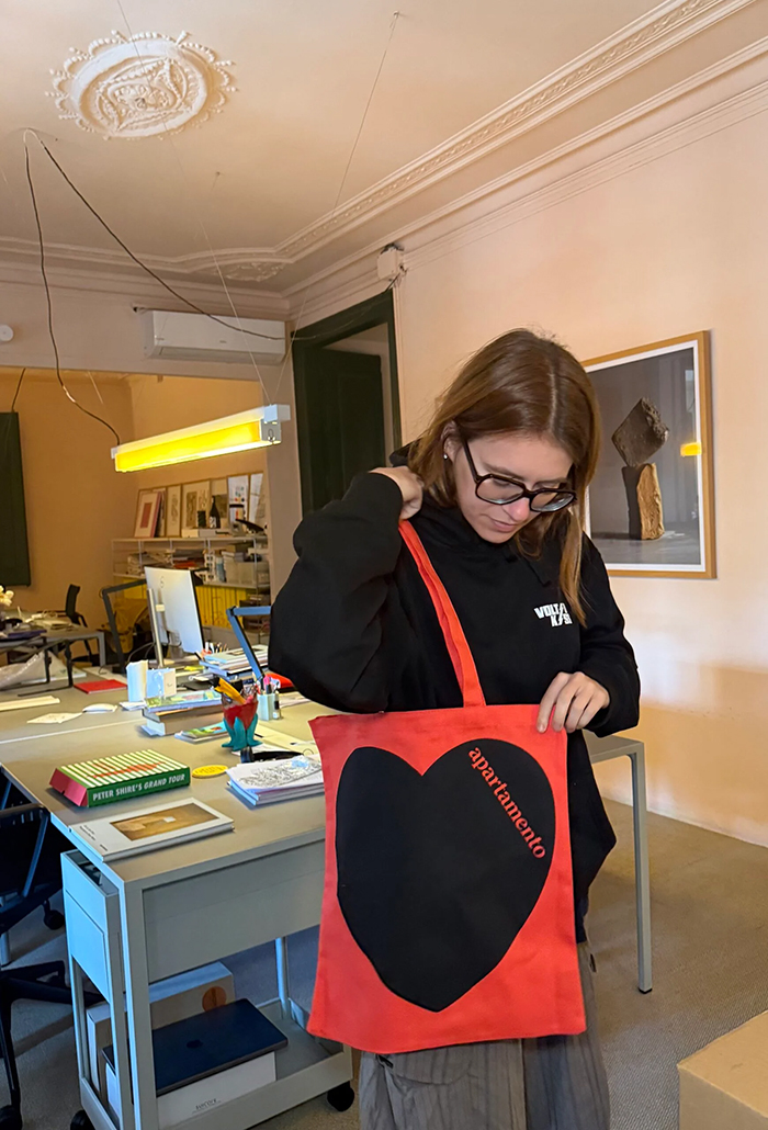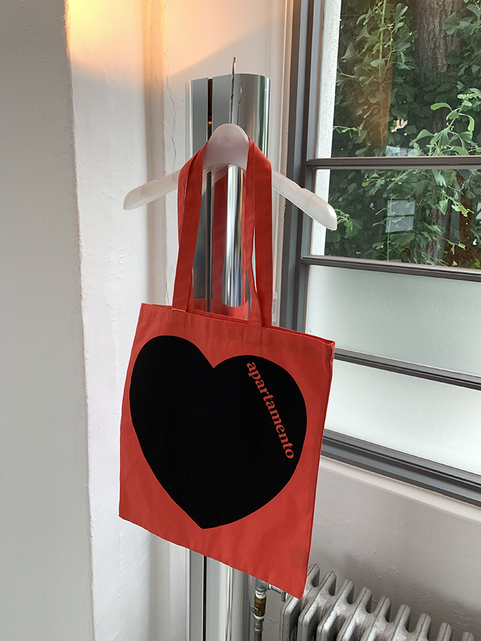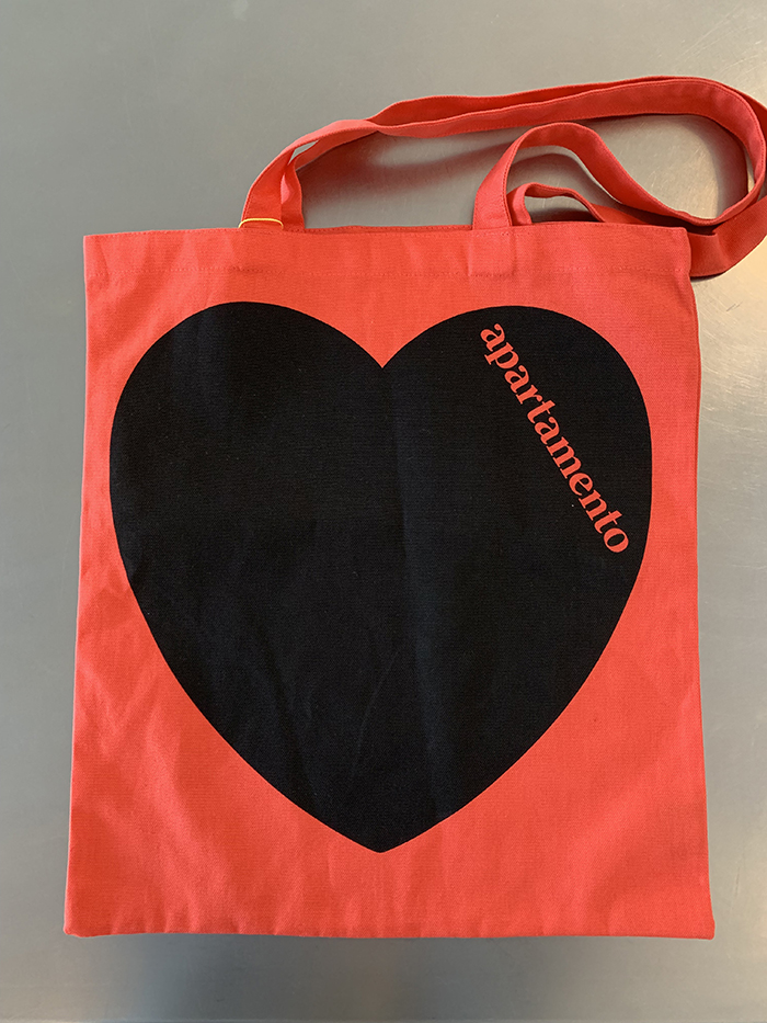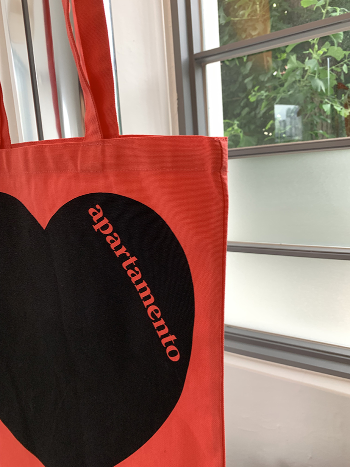 Show your love with the new Apartamento tote bag, which features our classic logo against a bold, rousing heart. With its bright blue background, our canvas totes liven up any adventure. Wherever home might take you, we’ve got the bag for you grab yours today!