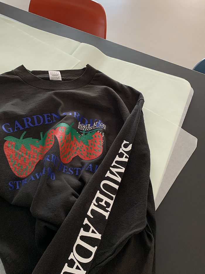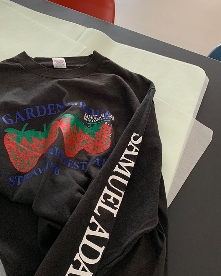 시간이 만들어낸 멋스러운 Vintage 50/50 USA Printing Long sleeves T-shirt 에 딸기씨 작업을 한 제품입니다 🍓 뒷부분에는 lilisun 나염이 추가 되었습니다 🍋