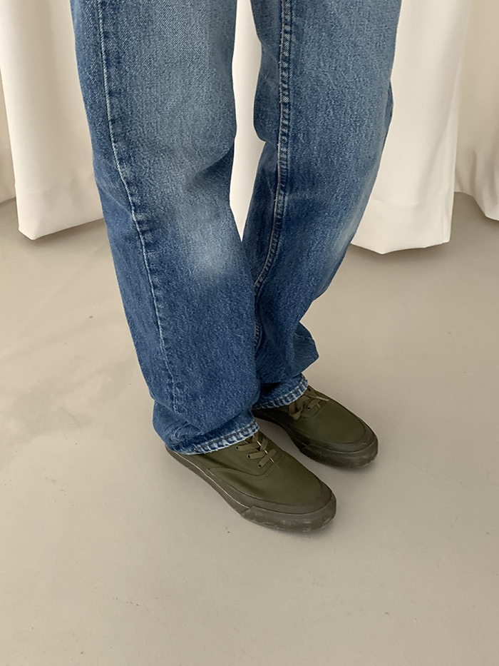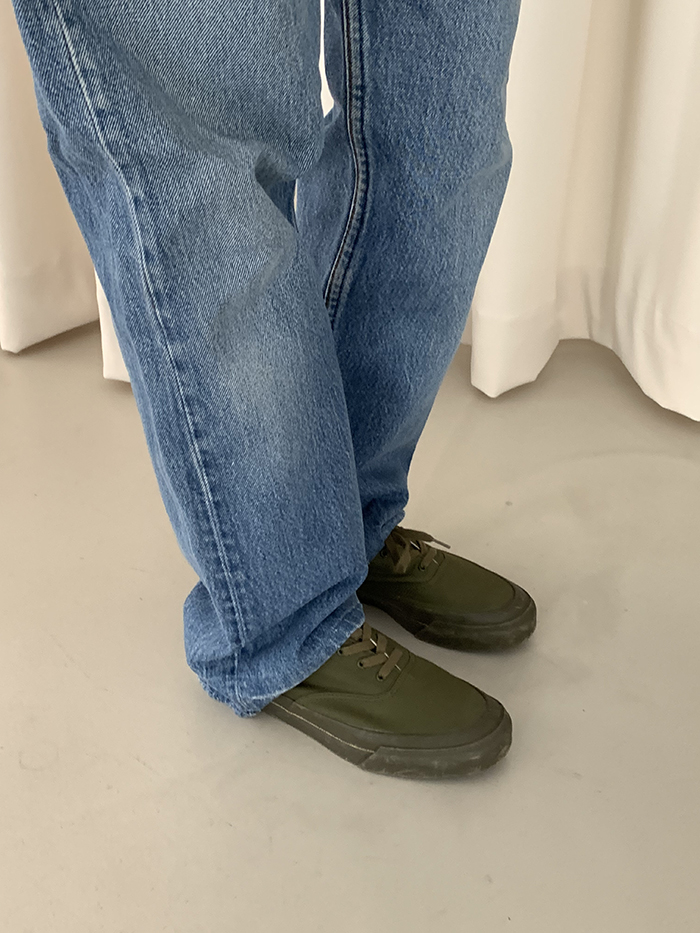착용 시 슬림 스트레이트 핏이며 신축성이 없는 논스판 제품입니다.