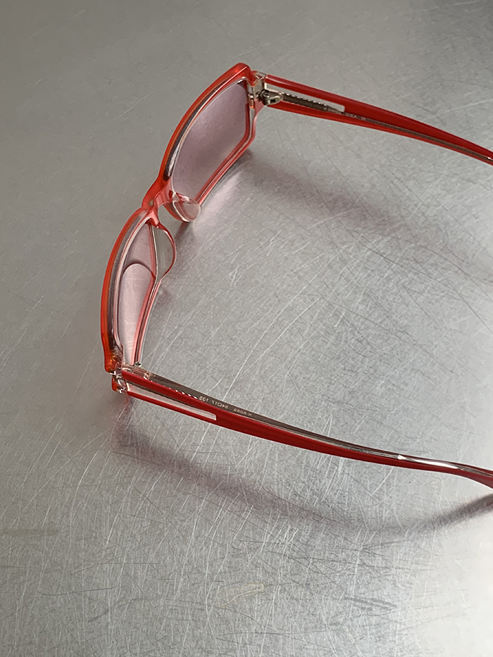 제품에 따라 간혹 코 받침 변색, 미세한 잔흠집 등의 세월감이 느껴질 수 있으며 코 받침의 경우에 간단하게 안경원에서 교체 가능합니다.