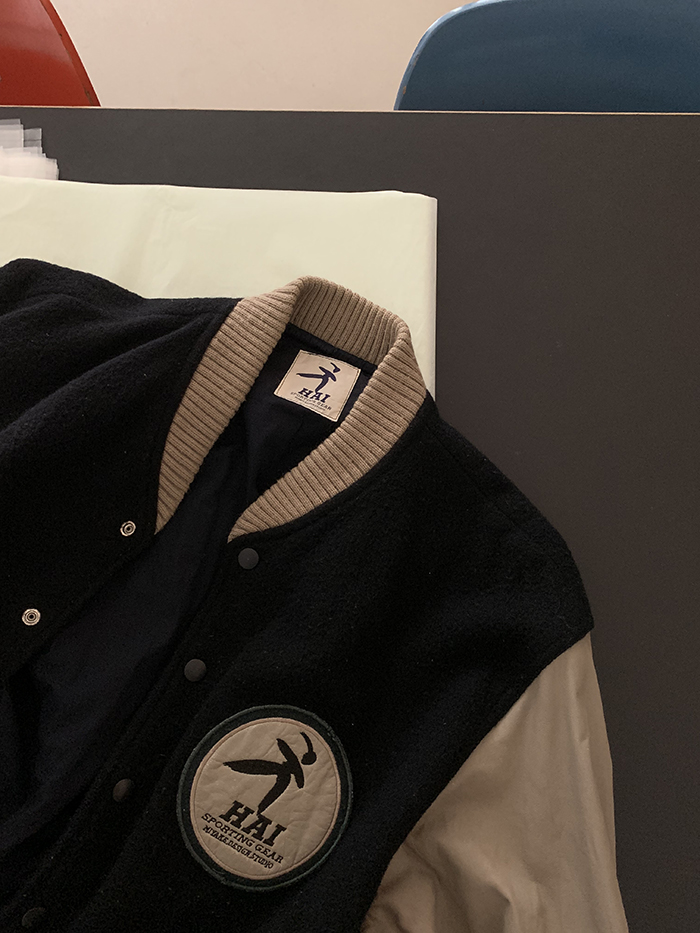 80's "HAI by ISSEY MIYAKE" wool Varsity Jacket (Rare Design)
