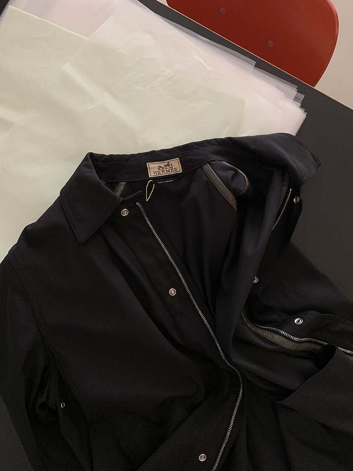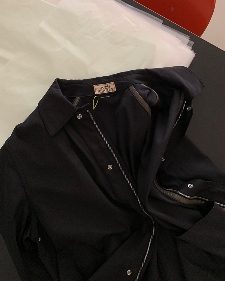90's "HERMES" Leather trim half Jacket