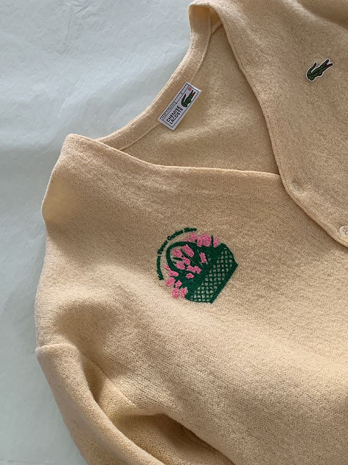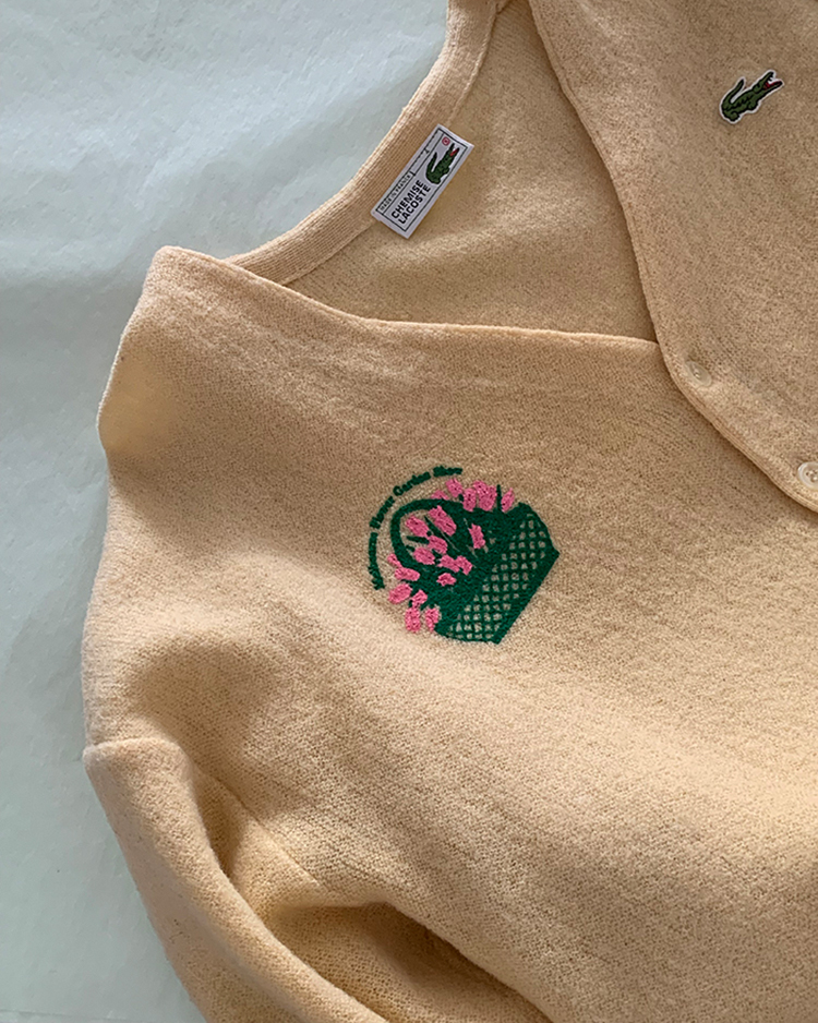 빈티지 라코스테 니트 위에 오직 단 하나의 위트 있는 튤립 제품을 만나보세요 🌷 뒷부분에 lilisun 나염이 추가되었습니다 🍋