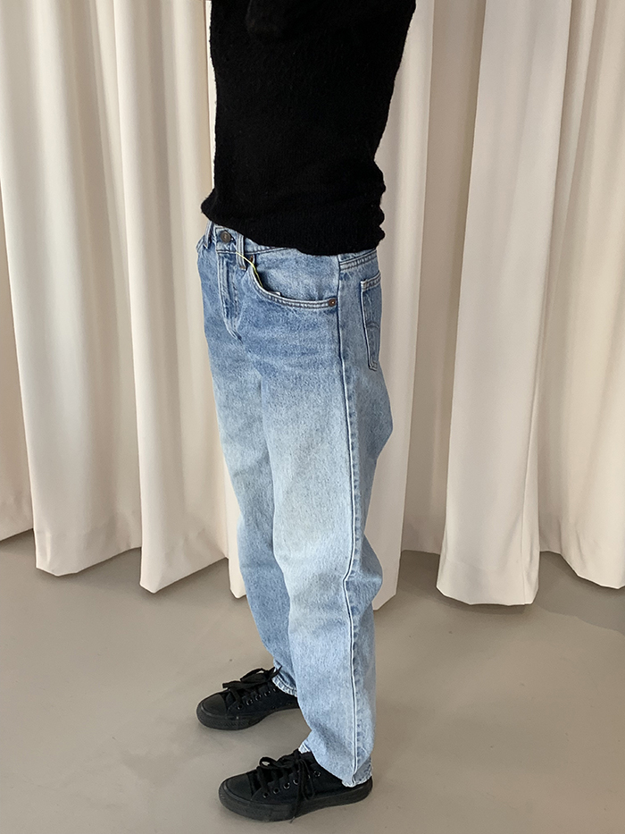 착용 시 스트레이트 핏이며 아래로 갈수록 자연스래 살짝 좁아지는 테이퍼드 핏이며, 신축성이 없는 논스판 제품입니다.