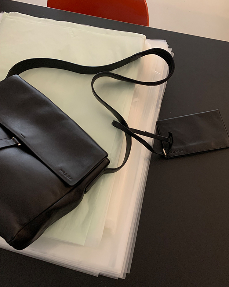 90's - 00's "PRADA" Leather x Neoprene Cross Bag (rare design)