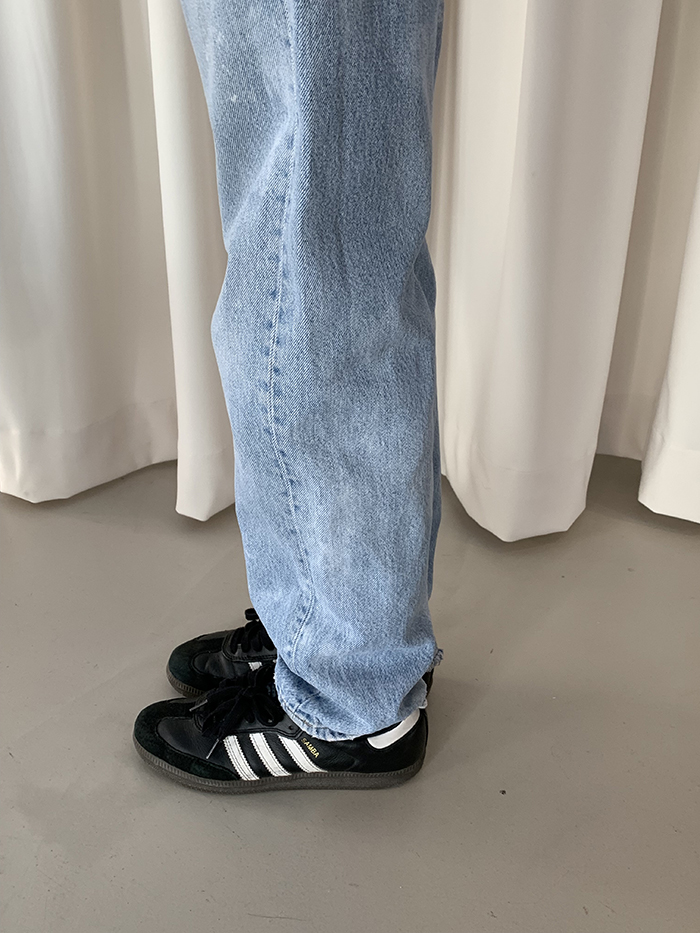 착용 시 클래식 스트레이트 핏이며 신축성이 없는 논스판 제품입니다.