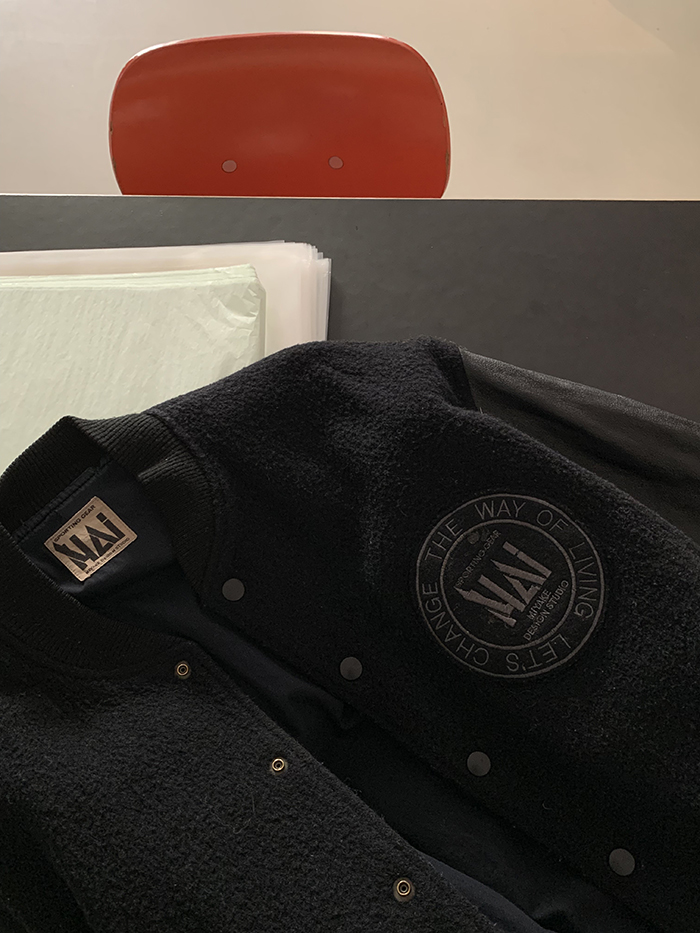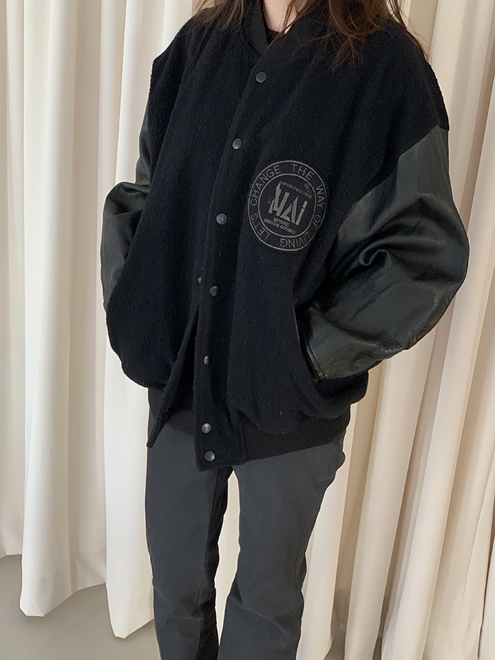 80's "HAI by ISSEY MIYAKE" wool Varsity Jacket (Rare Design)