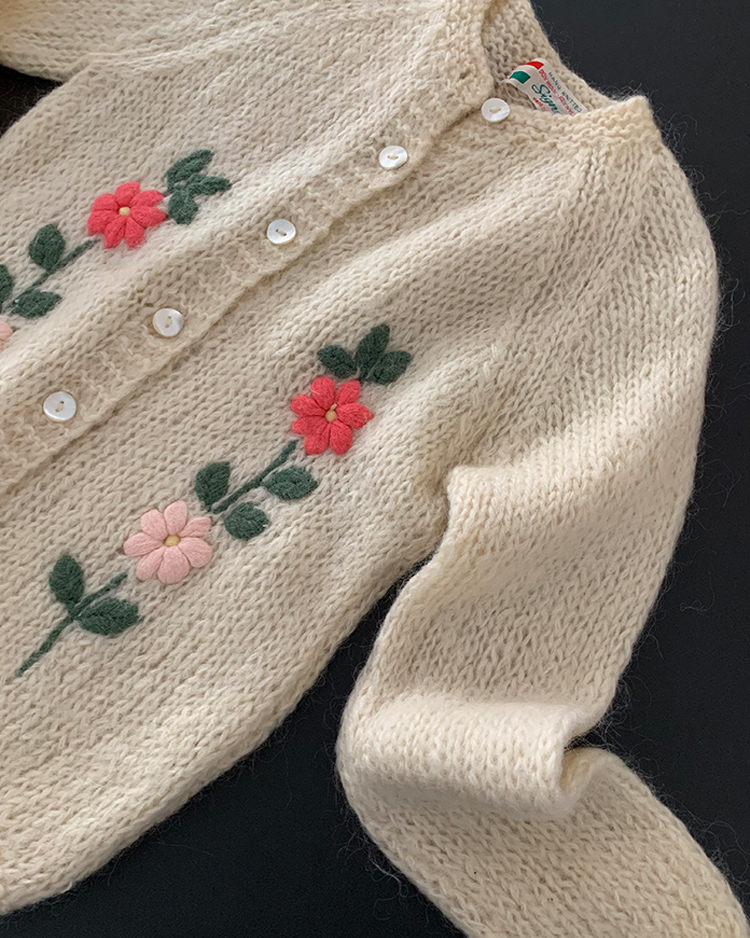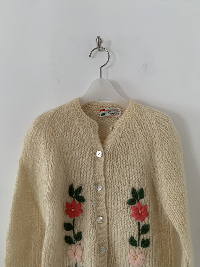 80's Vintage Italy Flower hand Cardigan