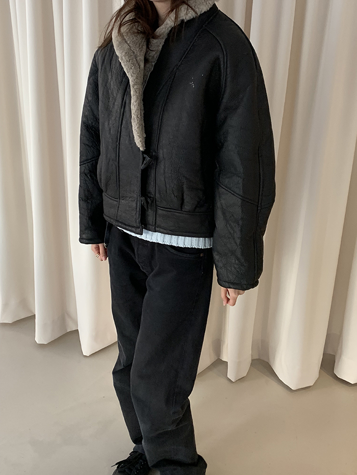 80's Vintage pure wool Sheepskin Crop Mustang