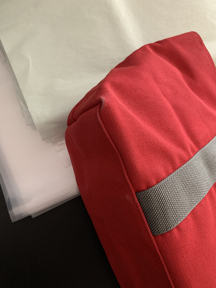- 가방 내부 똑딱이 체결시 네모 형태의 느낌으로 변경 가능