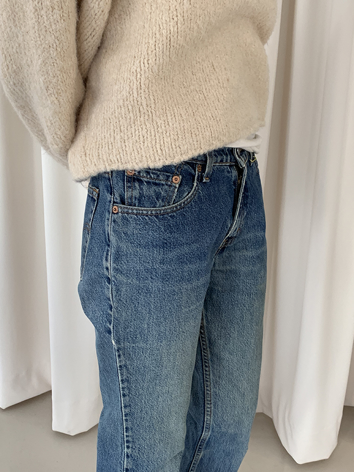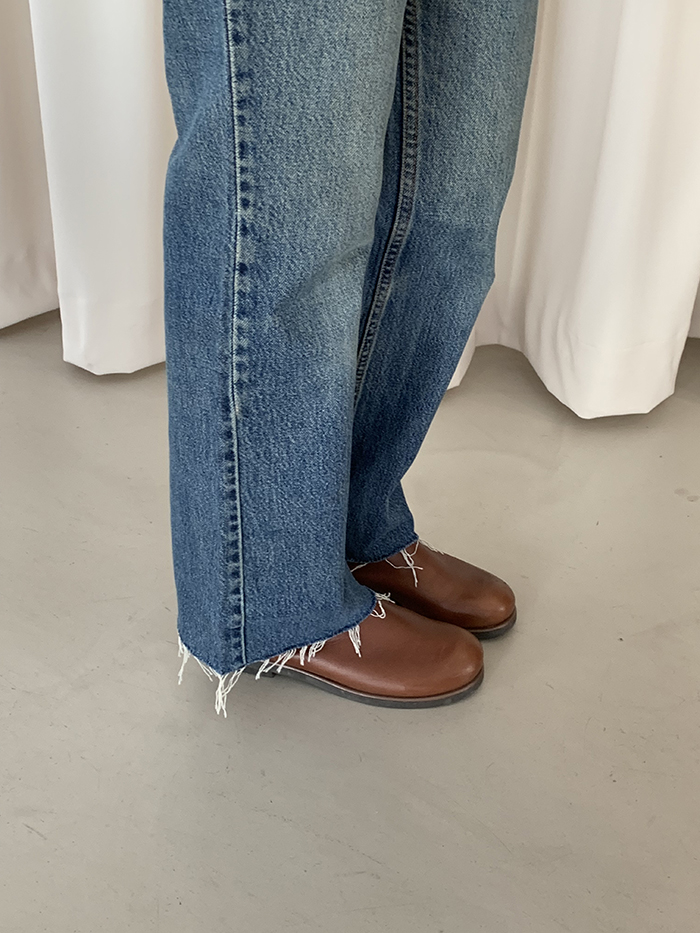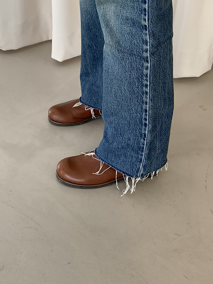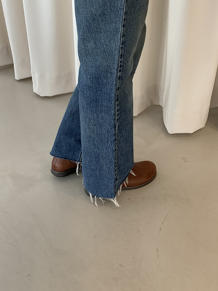 착용 시 클래식한 부츠컷 핏이며 신축성이 없는 논스판 제품입니다.