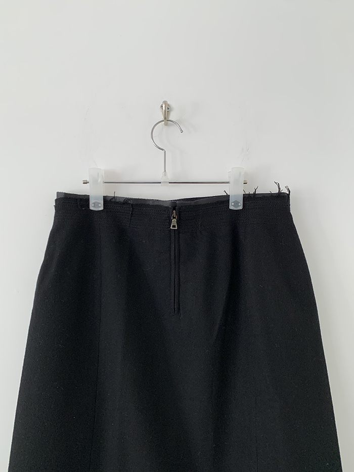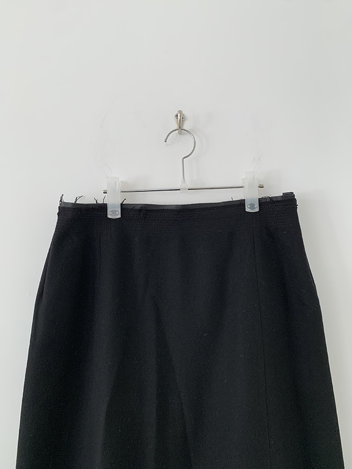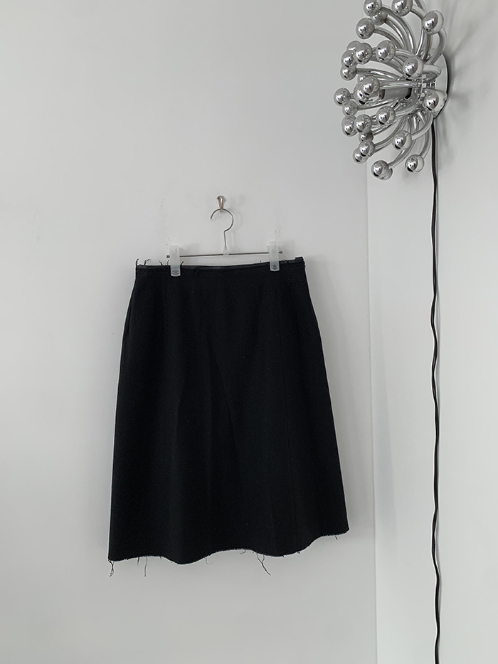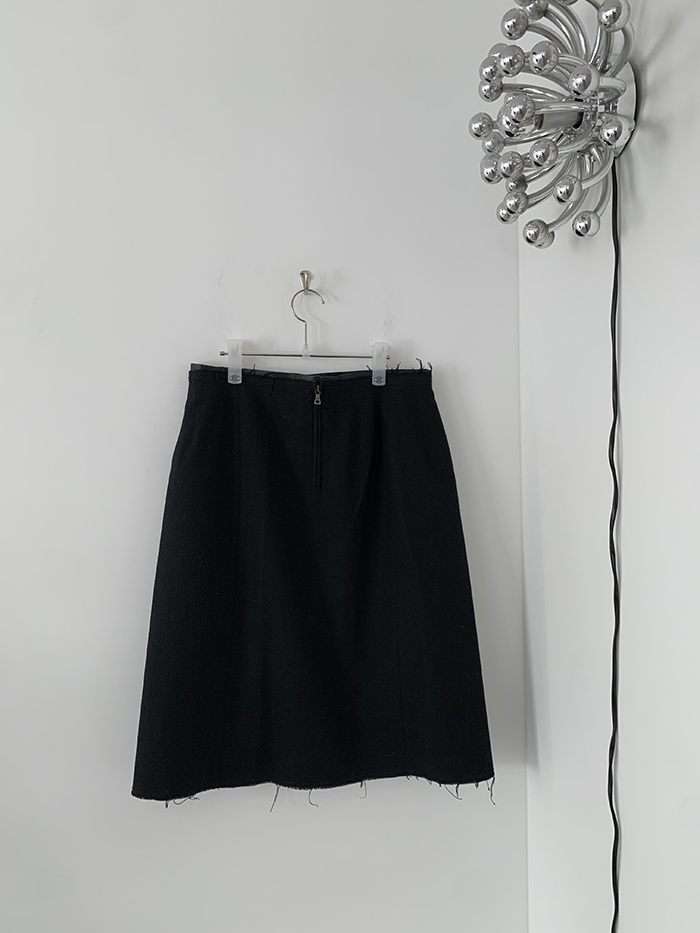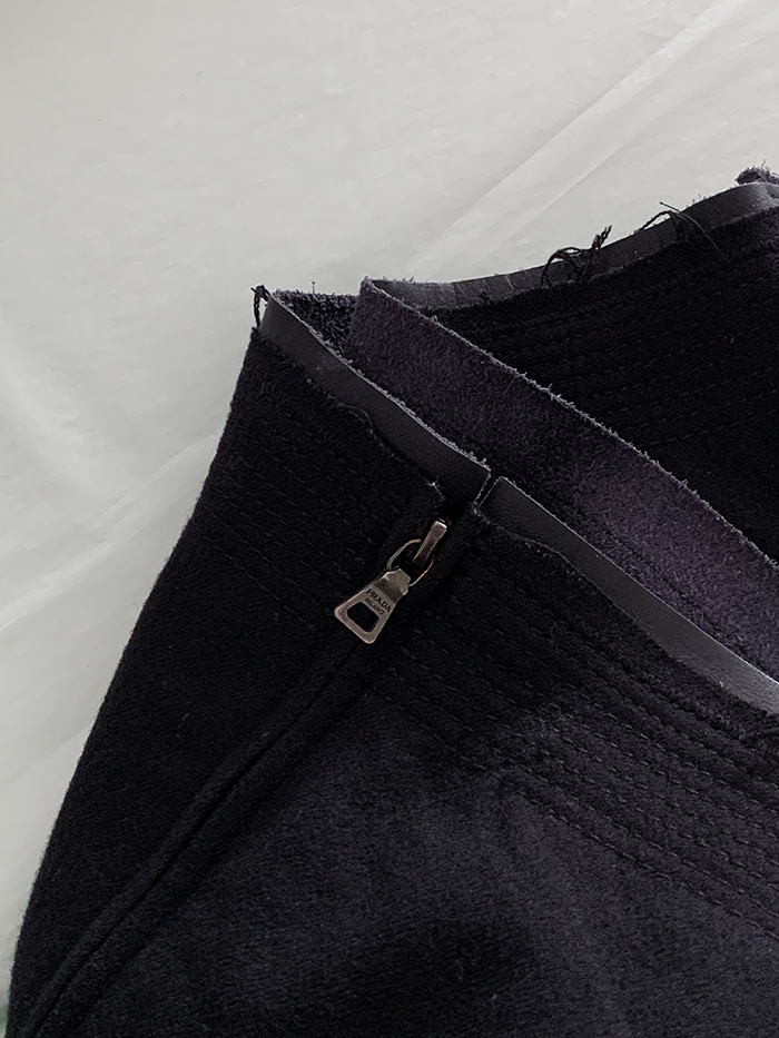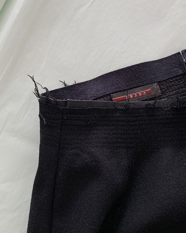 00's "Prada" virgin wool x leather trimming Skirt