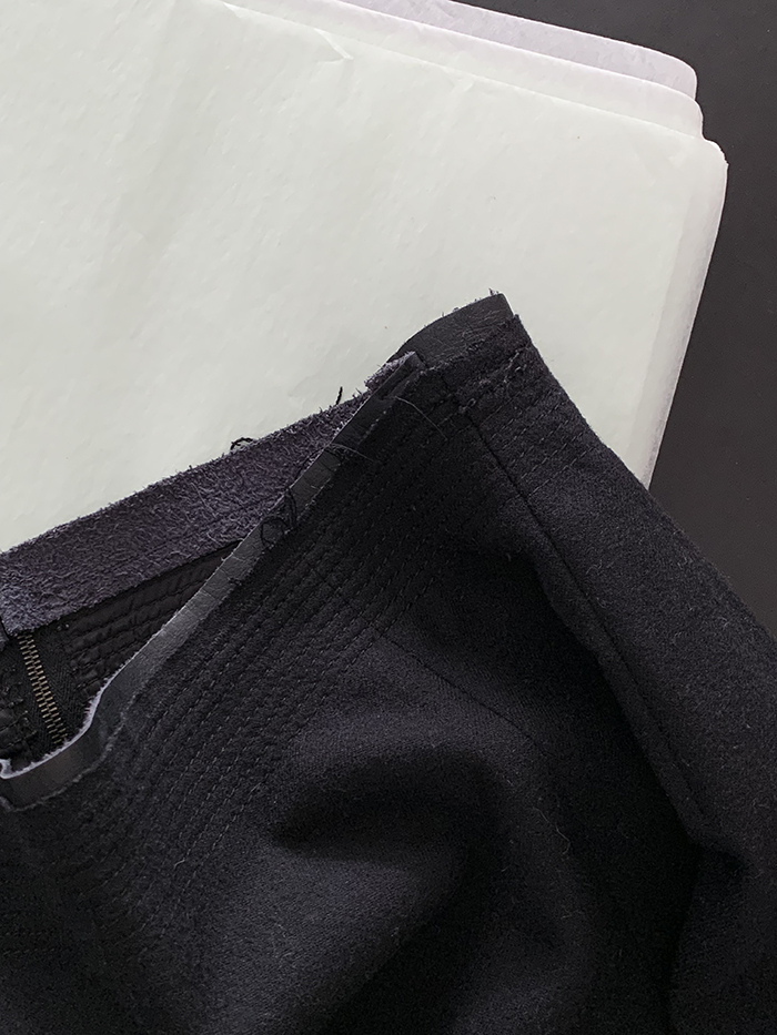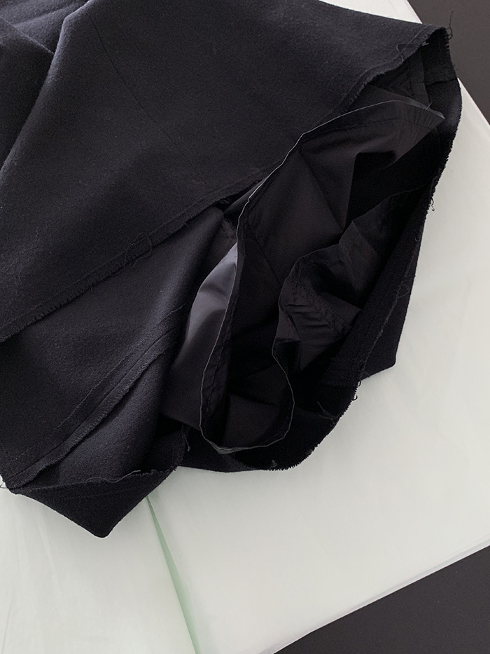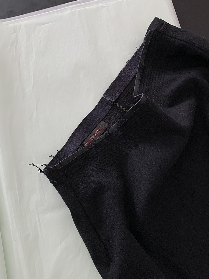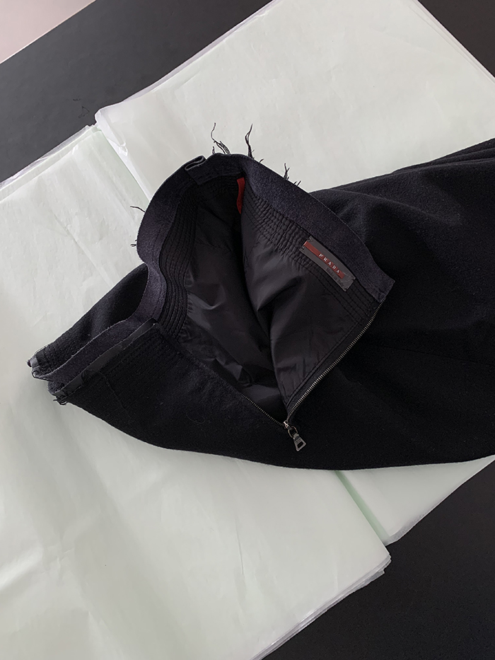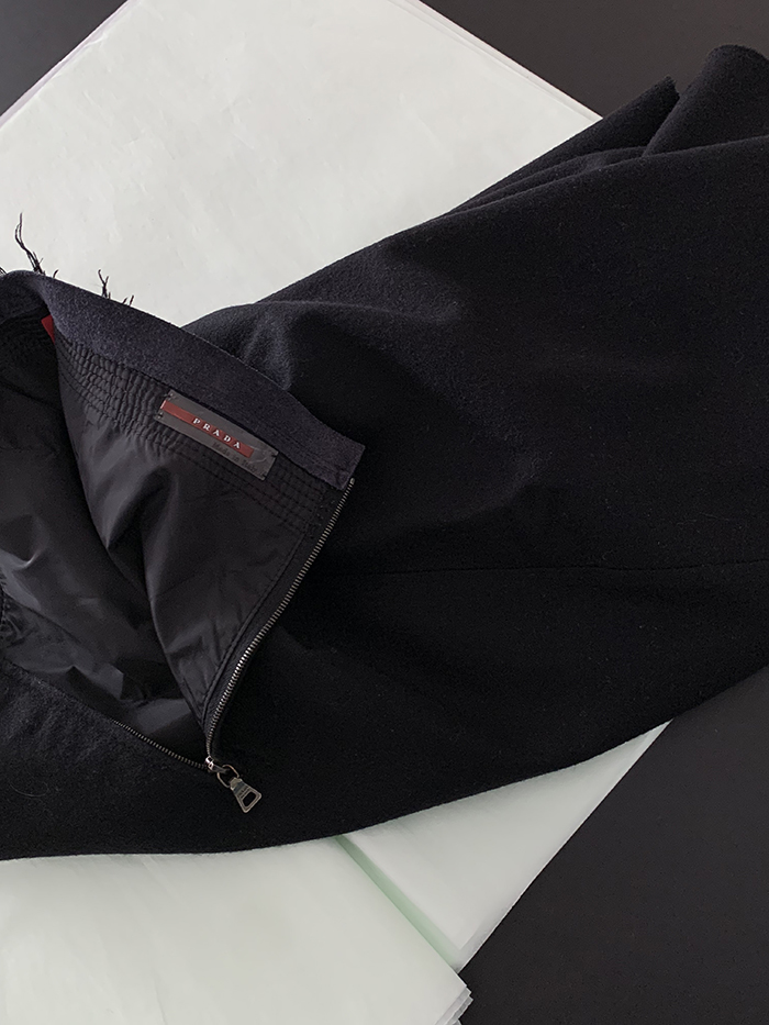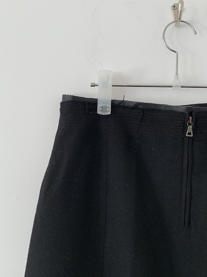 00's "Prada" virgin wool x leather trimming Skirt