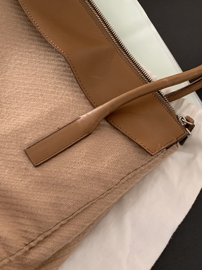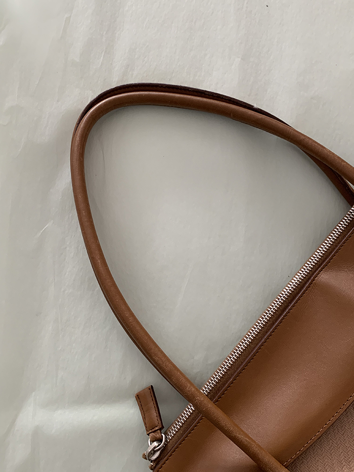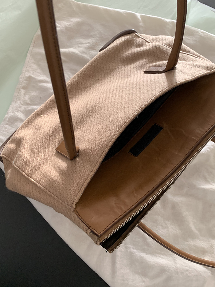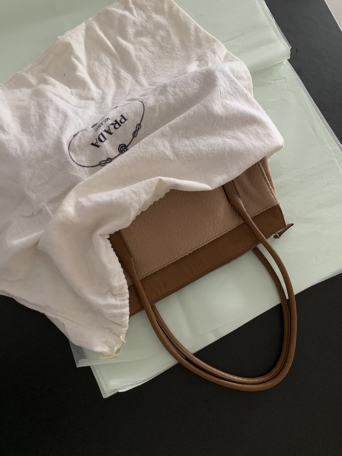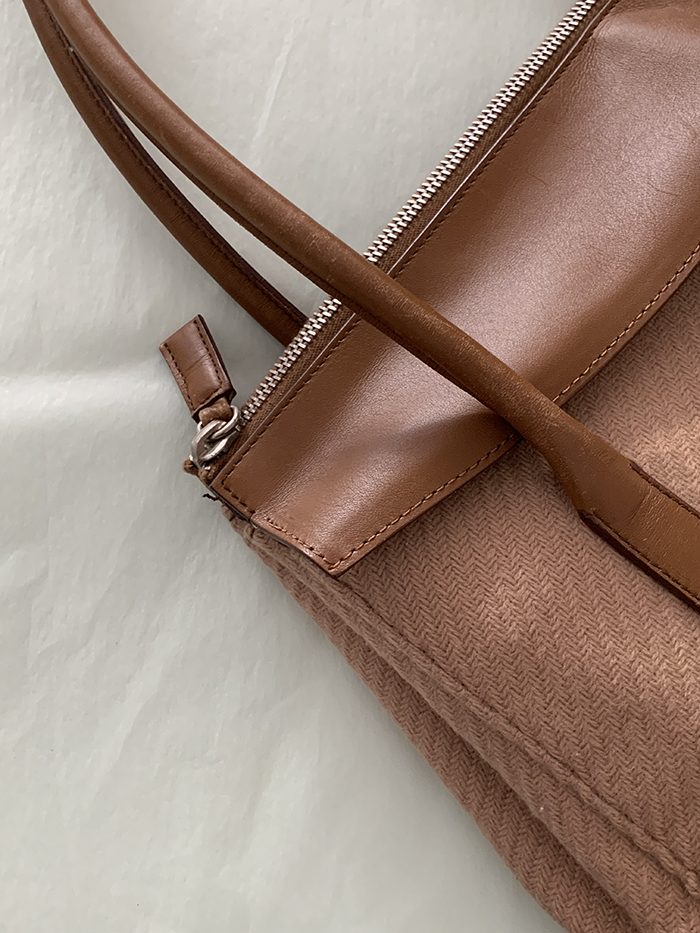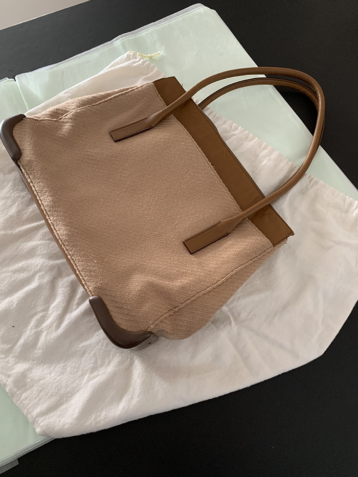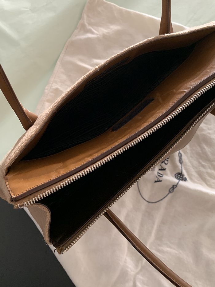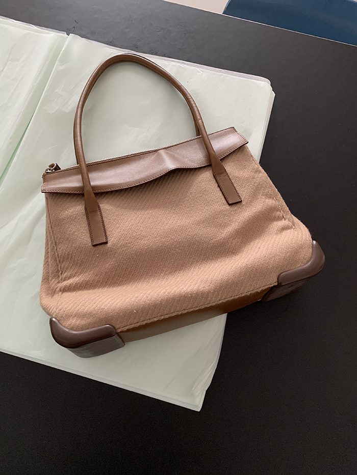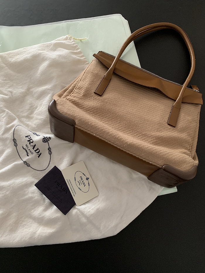 90's "PRADA" leather x wool Docking Tote Bag (Rare Design)
