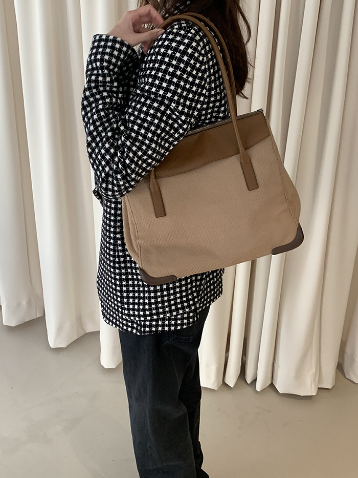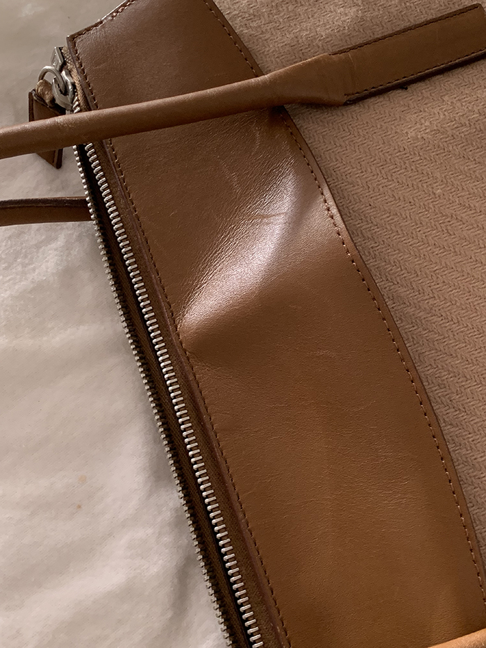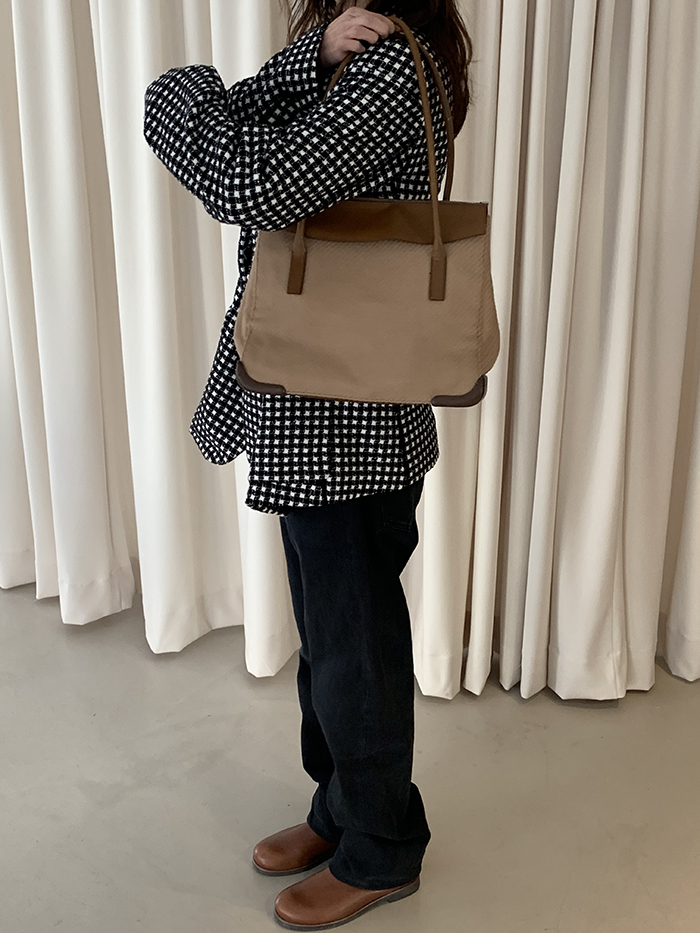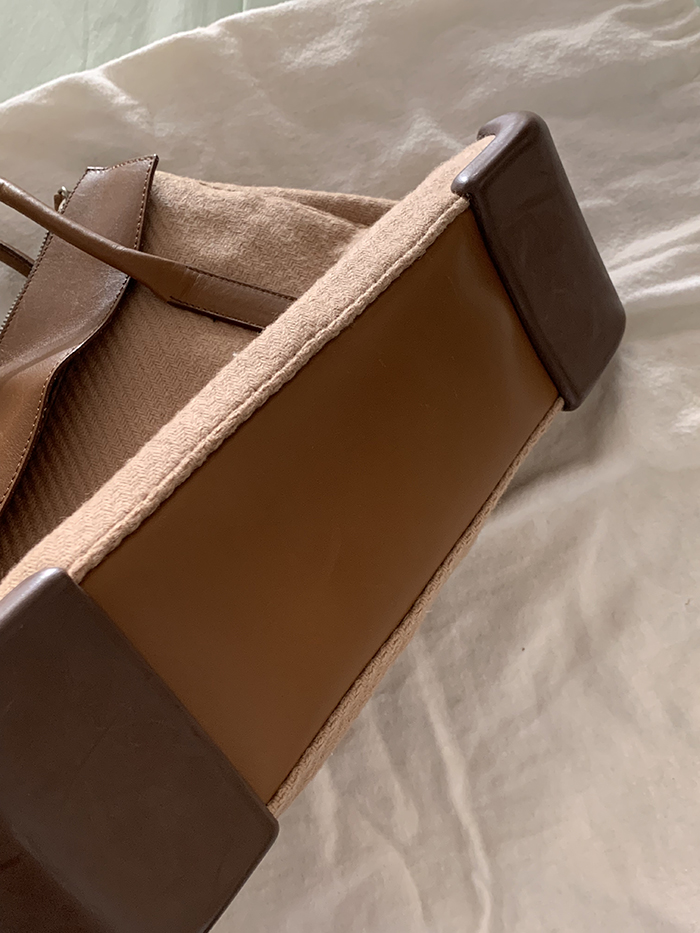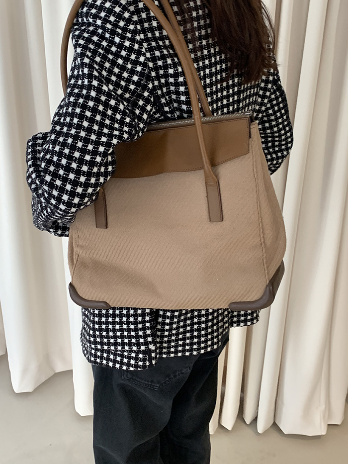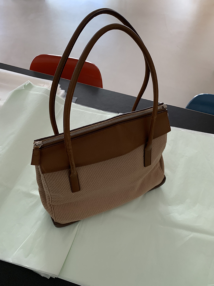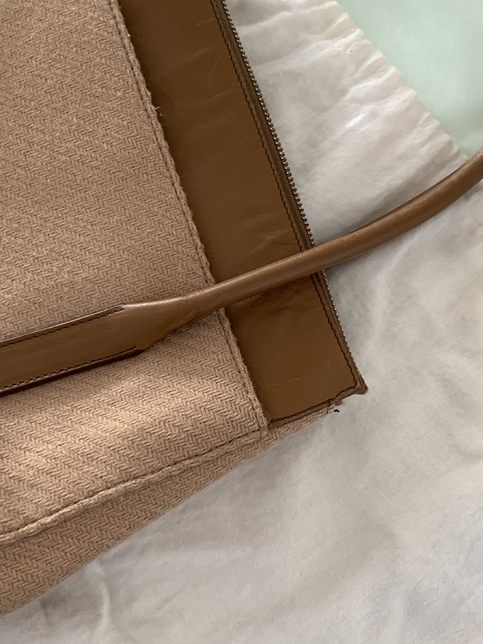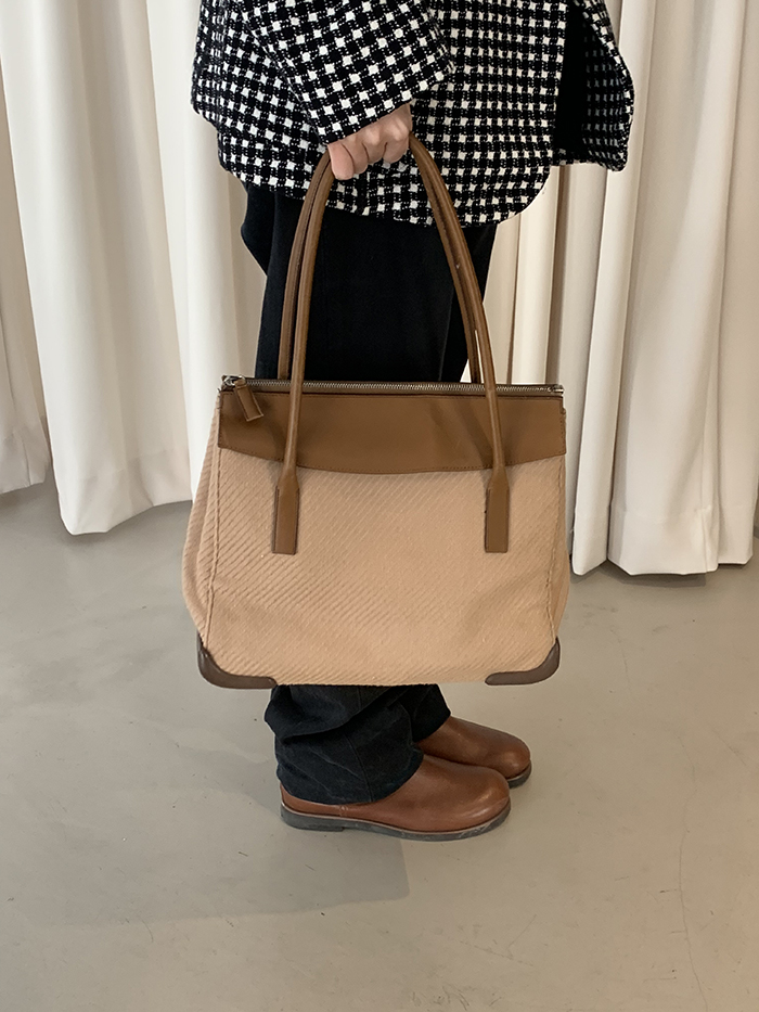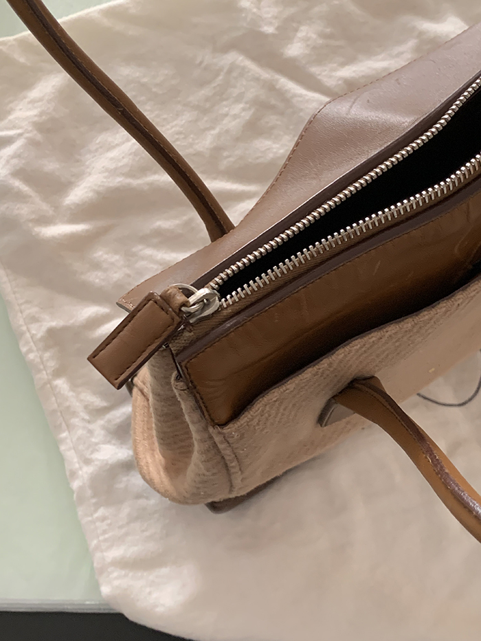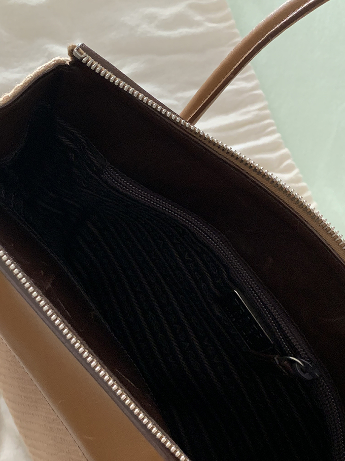 90's "PRADA" leather x wool Docking Tote Bag (Rare Design)