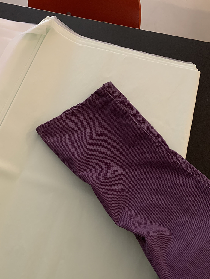 착용 시 스트레이트 핏이며 신축성이 있는 제품입니다.