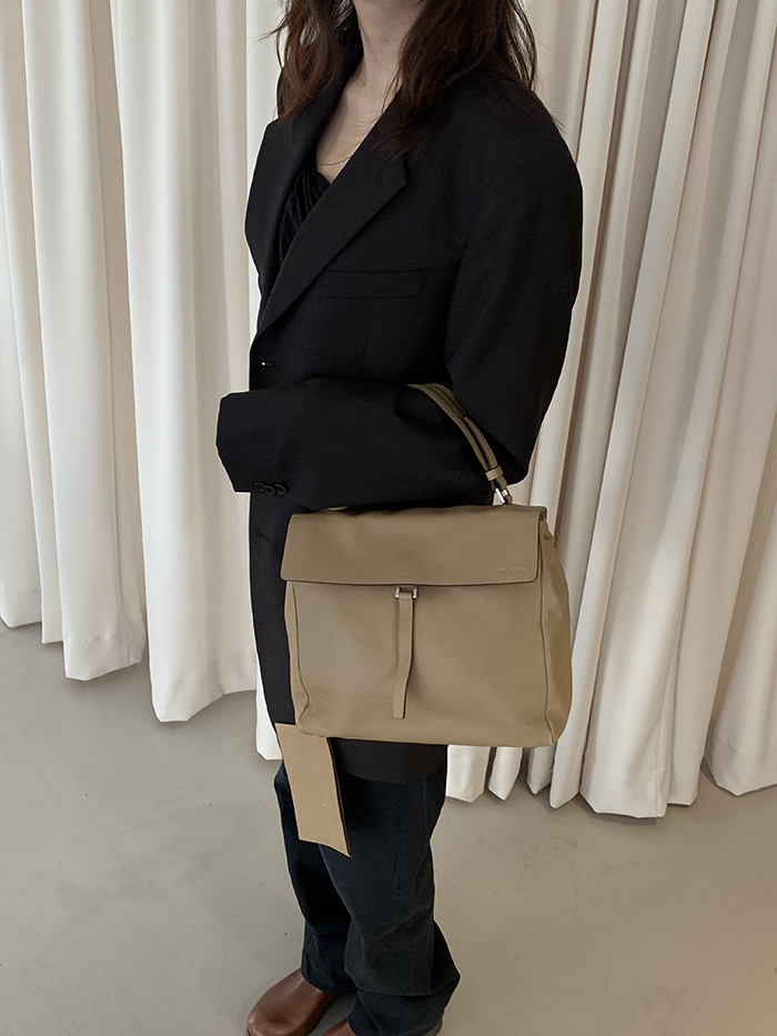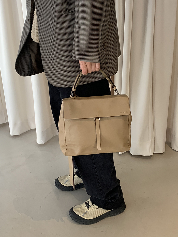 00's "PRADA" Leather x Neoprene Tote Bag (rare design)