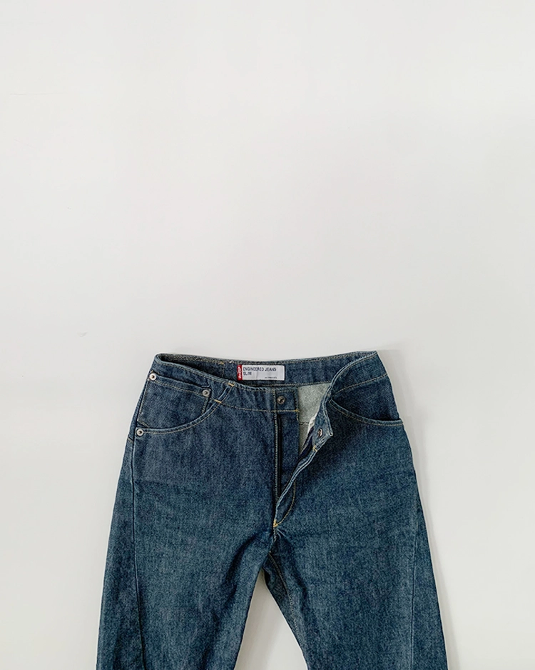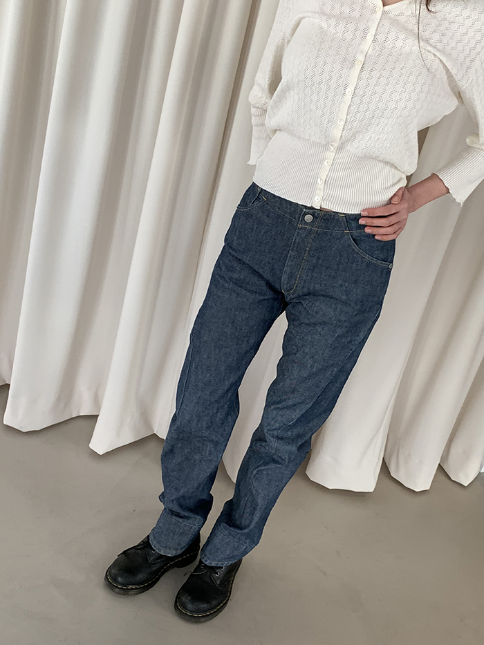 착용 시 슬림 스트레이트 핏이며 신축성이 없는 논스판 제품입니다.