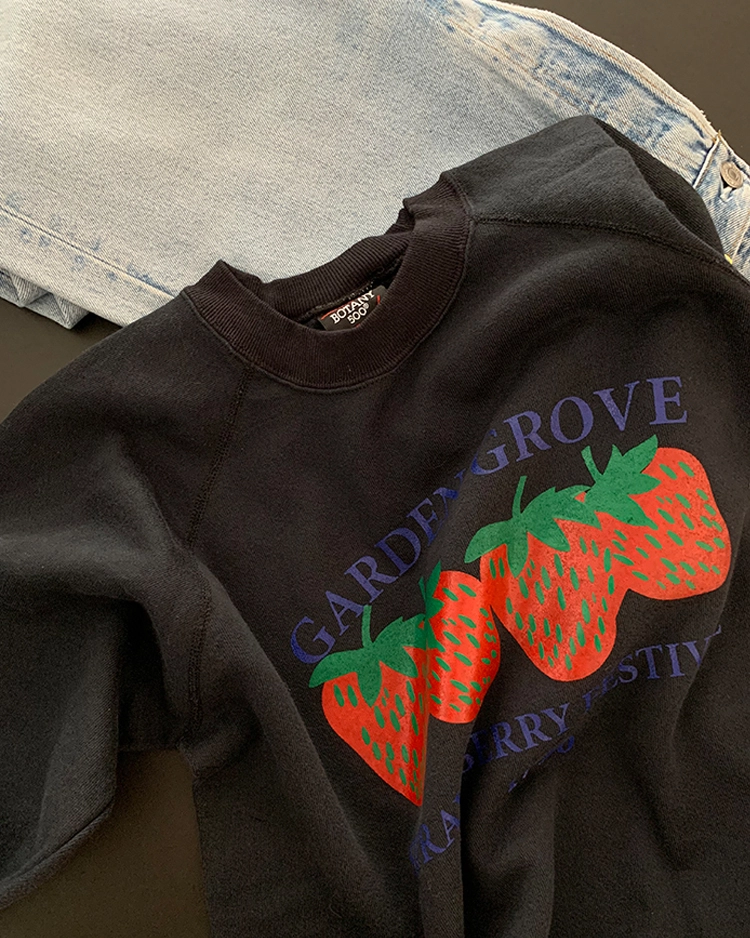 시간이 만들어낸 멋스러운 Vintage Printing Sweatshirt 에 딸기씨 작업을 한 제품입니다 🍓 좀 더 빈티지스러운 딸기씨를 만나고 싶으신 분들께 추천드려요:)