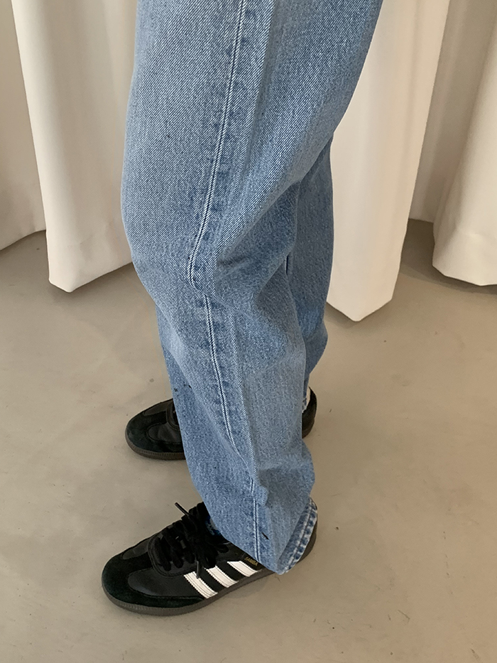 착용 시 슬림 스트레이트 핏이며 신축성이 없는 논스판 제품입니다.
