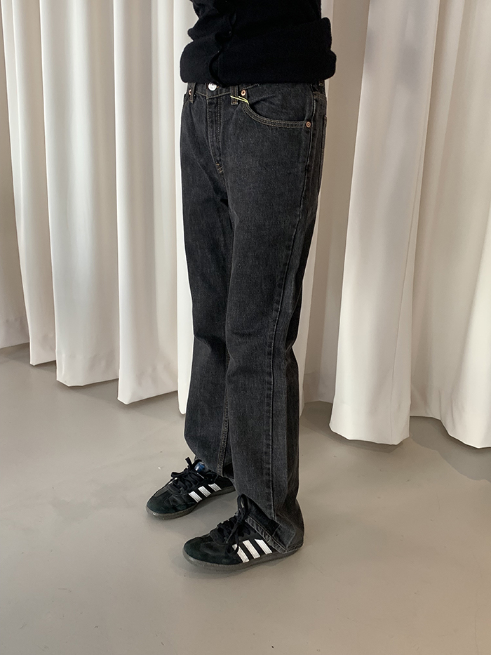 착용 시 클래식한 부츠컷 핏이며 신축성이 없는 논스판 제품입니다.