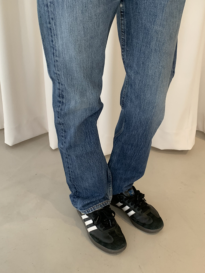 착용 시 슬림 스트레이트 핏이며 신축성이 없는 논스판 제품입니다.