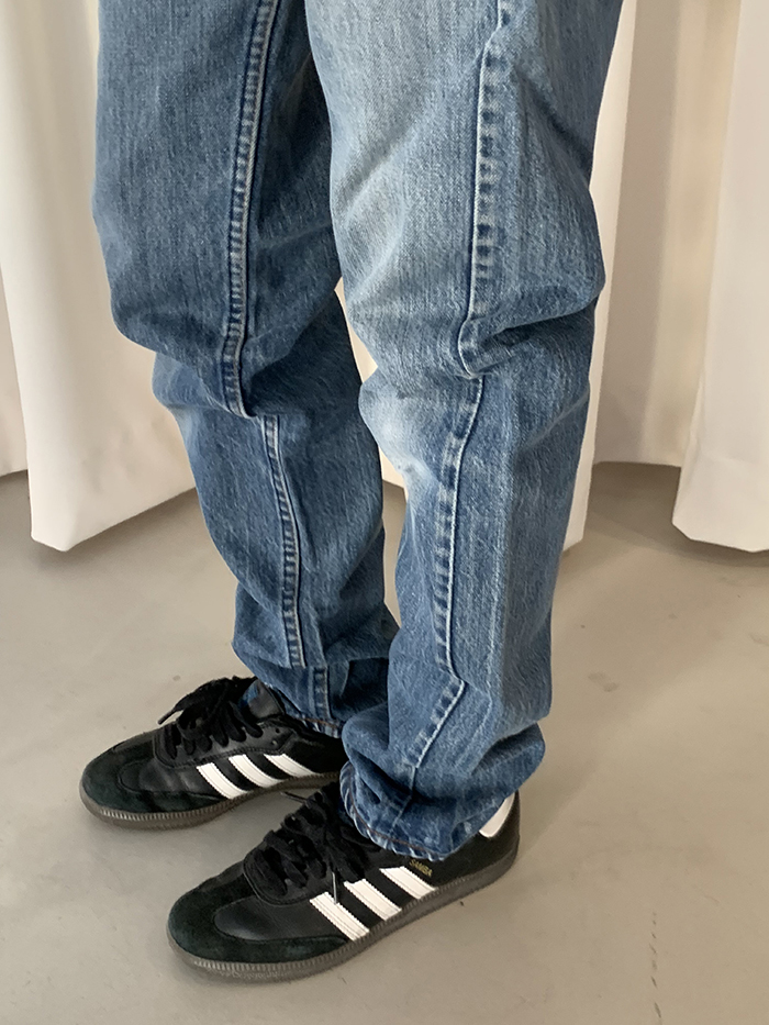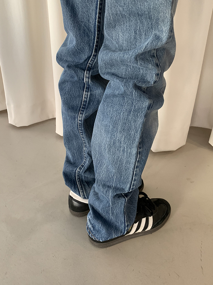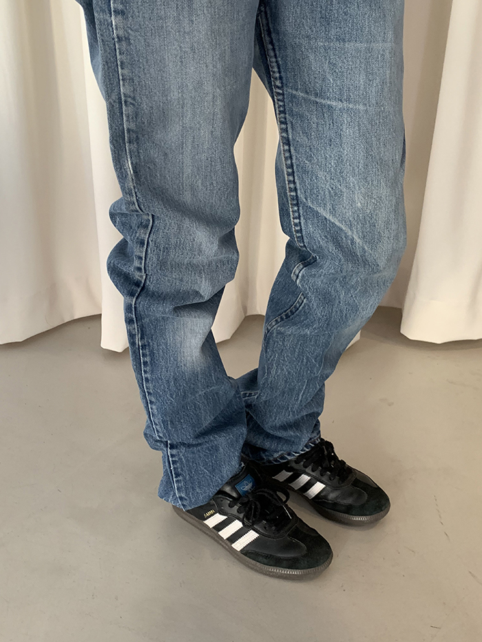 착용 시 슬림 스트레이트 핏이며 신축성이 없는 논스판 제품입니다.