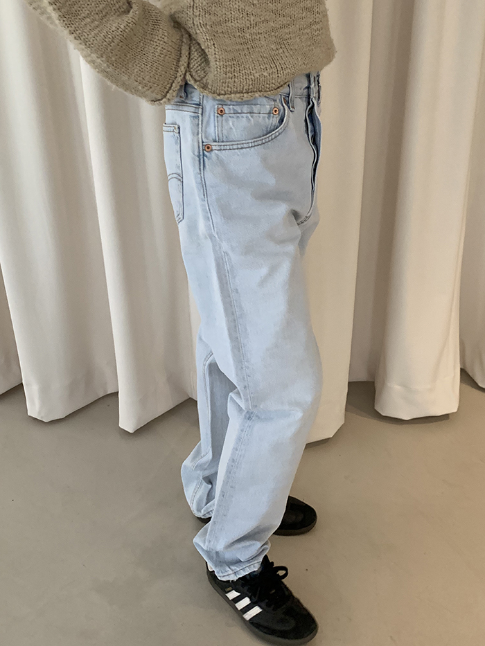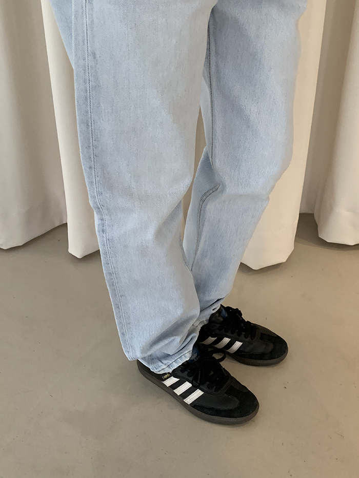 착용 시 슬림 스트레이트 핏이며 신축성이 없는 논스판 제품입니다.