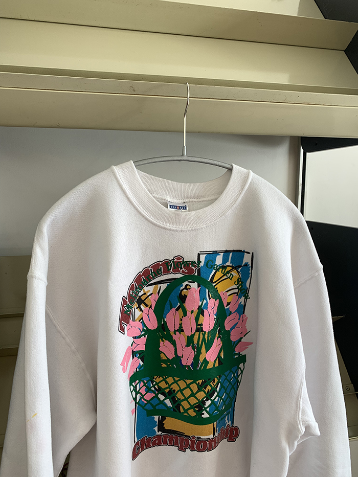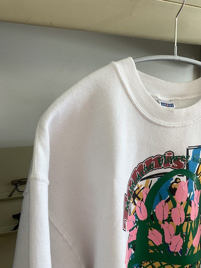 이번에 새롭게 소개해 드린 'Melbourne Flower Garden Show’ 시리즈를 Vintage USA 50/50 Printing Sweatshirt 에 추가로 작업을 한 제품입니다. 세월이 만들어 낸 멋스러운 컬러 위의 오직 단 하나의 위트 있는 튤립 제품을 만나보세요 🌷 백 라인에는 lilisun 나염이 추가되었습니다 🍋