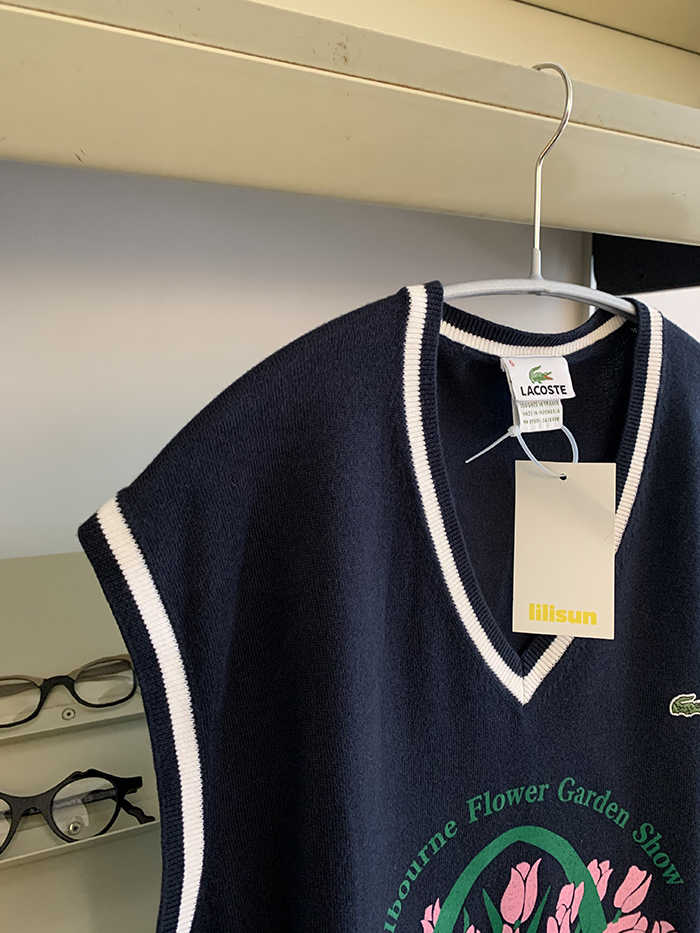 빈티지 라코스테 코튼 니트 위에 오직 단 하나의 위트 있는 튤립 제품을 만나보세요 🌷 뒷부분에 lilisun 나염이 추가되었습니다 🍋