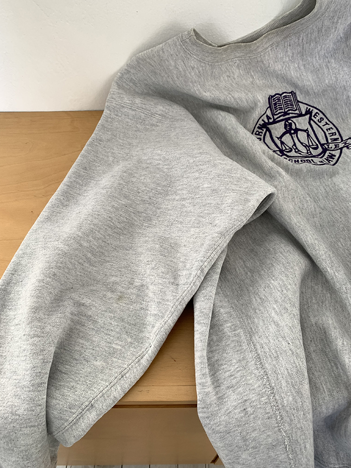 챔피온의 대표 라인의 리버스 위브(Reverse Weave) 입니다. 기존 스웻셔츠보다 두툼한 재질로 두께는 12oz이고 내구성도 우수합니다. 또한 리버스 위브의 장점은 기존의 직조 방향을 세로방직에서 가로방직으로 제작하는 방식이라 세탁 후에도 기장 수축이 일어나지 않아 늘 한결 같이 입을수있으며 기모가 없기 때문에 많은 시즌에 착용 가능한 아이템입니다.
