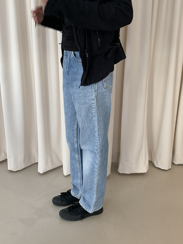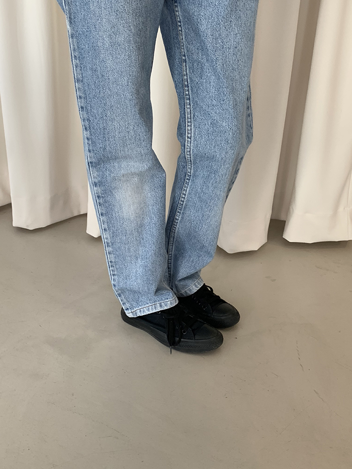 착용 시 슬림 스트레이트 핏이며 신축성이 없는 논스판 제품입니다.