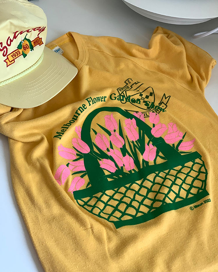 이번에 새롭게 소개해 드린 'Melbourne Flower Garden Show’ 시리즈를 Vintage Australia 50/50 Printing T-shirt에 추가로 작업을 한 제품입니다. 세월이 만들어 낸 멋스러운 컬러 위의 오직 단 하나의 위트 있는 튤립 제품을 만나보세요 🌷 백 라인에는 lilisun 나염이 추가되었습니다 🍋