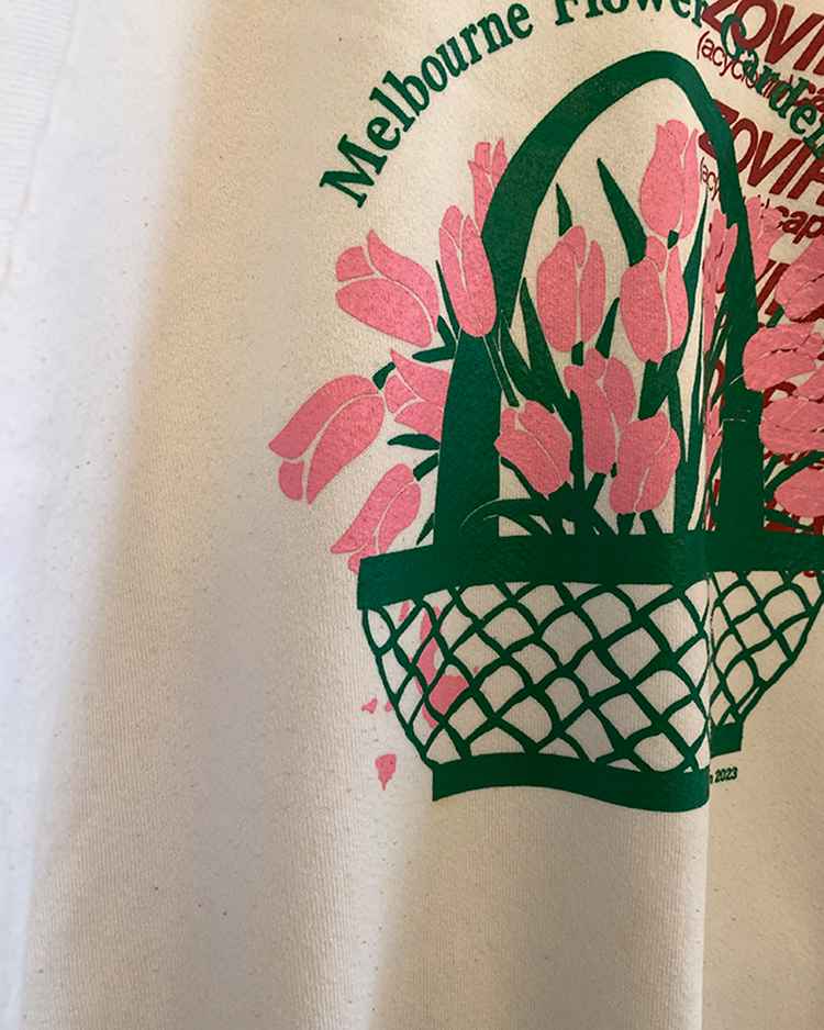 이번에 새롭게 소개해 드린 'Melbourne Flower Garden Show’ 시리즈를 Vintage USA 50/50 Printing Sweatshirt 에 추가로 작업을 한 제품입니다. 세월이 만들어 낸 멋스러운 컬러 위의 오직 단 하나의 위트 있는 튤립 제품을 만나보세요 🌷 백 라인에는 lilisun 나염이 추가되었습니다 🍋