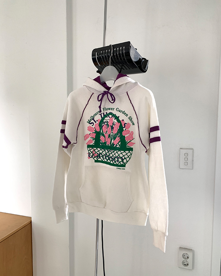 이번에 새롭게 소개해 드린 'Melbourne Flower Garden Show’ 시리즈를 Vintage USA 50/50 hoodie 에 추가로 작업을 한 제품입니다. 세월이 만들어 낸 멋스러운 컬러 위의 오직 단 하나의 위트 있는 튤립 제품을 만나보세요 🌷 백 라인에는 lilisun 나염이 추가되었습니다 🍋