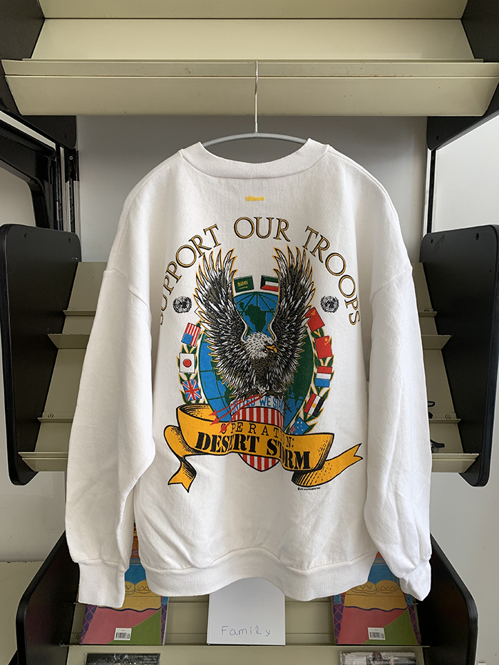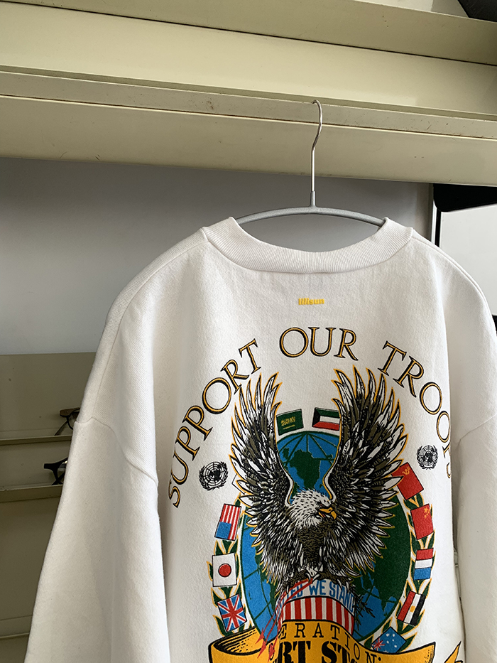 실크스크린 작업 특성상 미세한 갈라짐이 존재할 수 있으며 이는 불량이 아닌 점 참고 부탁드리며 Vintage 50/50 USA Sweatshirt 소재 특성상 자연스러운 보풀 및 사용감이 존재하오니 주문 전 참고 부탁드릴게요 :)