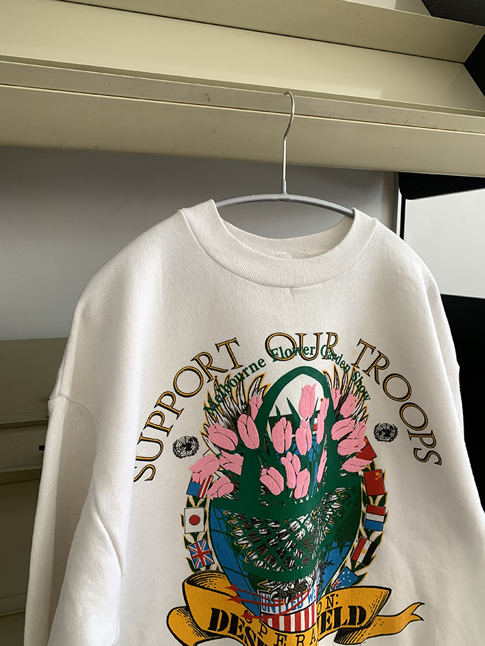이번에 새롭게 소개해 드린 'Melbourne Flower Garden Show’ 시리즈를 Vintage USA 50/50 Printing Sweatshirt 에 추가로 작업을 한 제품입니다. 세월이 만들어 낸 멋스러운 컬러 위의 오직 단 하나의 위트 있는 튤립 제품을 만나보세요 🌷 백 라인에는 lilisun 나염이 추가되었습니다 🍋